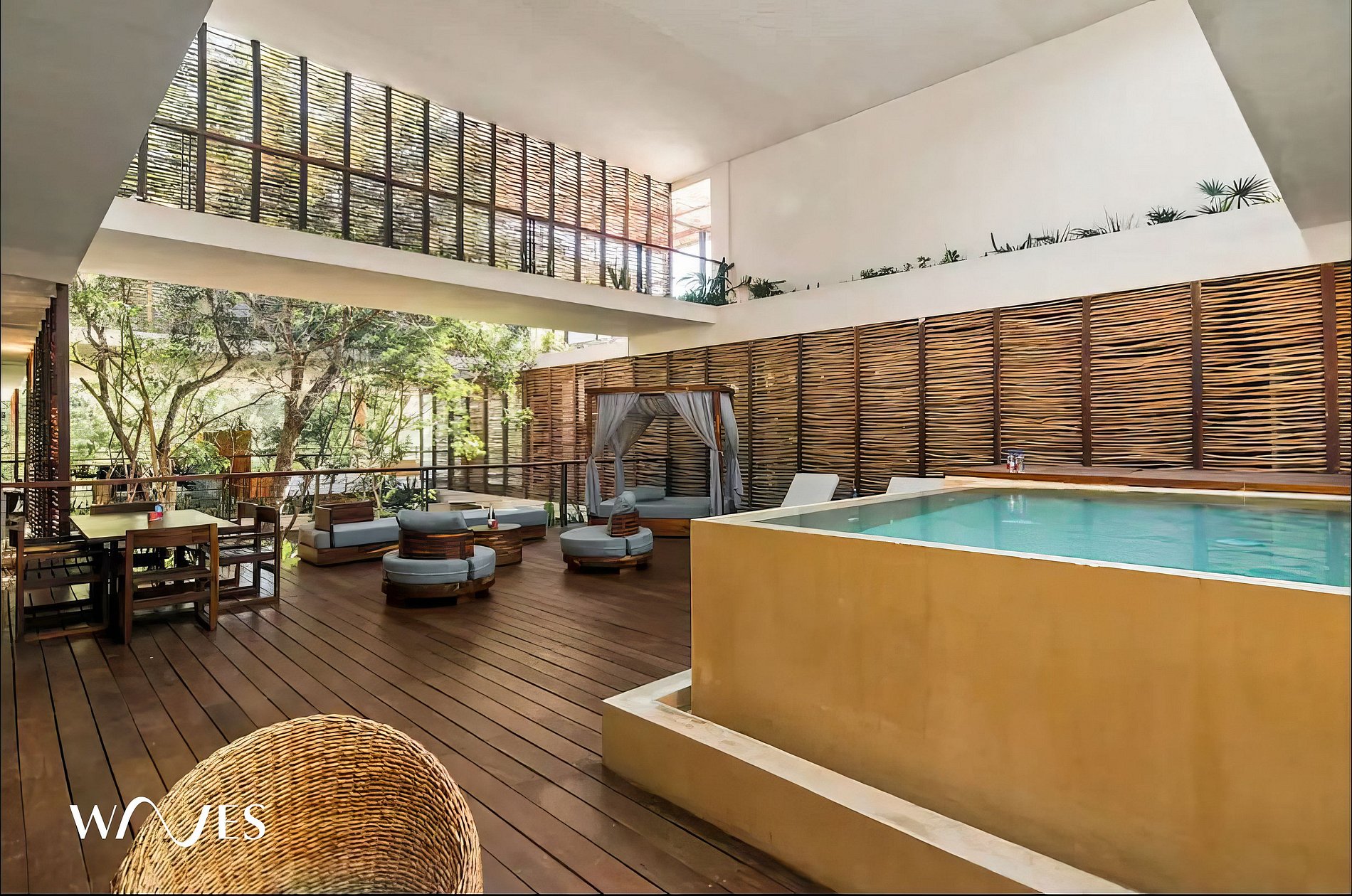 Aldea Zamá is an ecological and luxury residential community in Tulum. The complex is located between the town and the hotel zone, close to the best beaches, restaurants and beach clubs. An exclusive neighborhood with protected green areas that maintain the natural attractiveness of the region; It has a commercial area with businesses ranging from pastry shops, restaurants, cafes, clothing boutiques, jewelry stores and handicrafts, which give life and sophistication to the neighborhood.