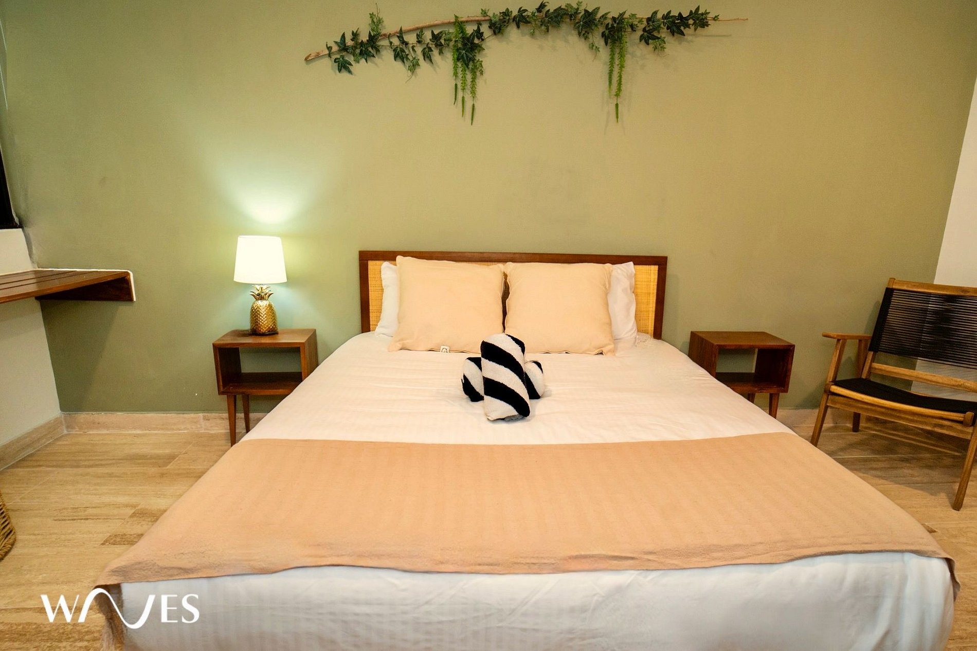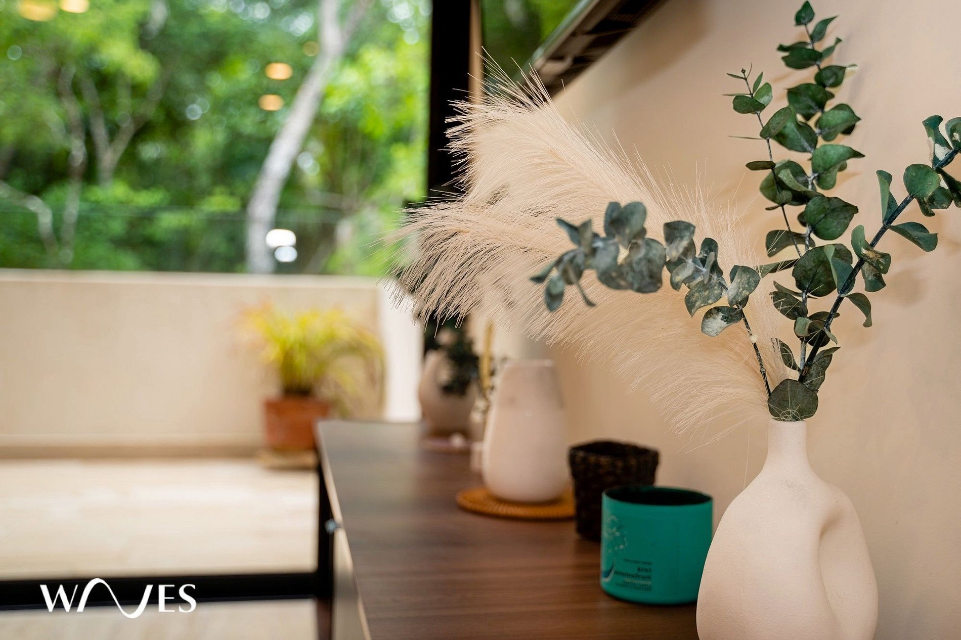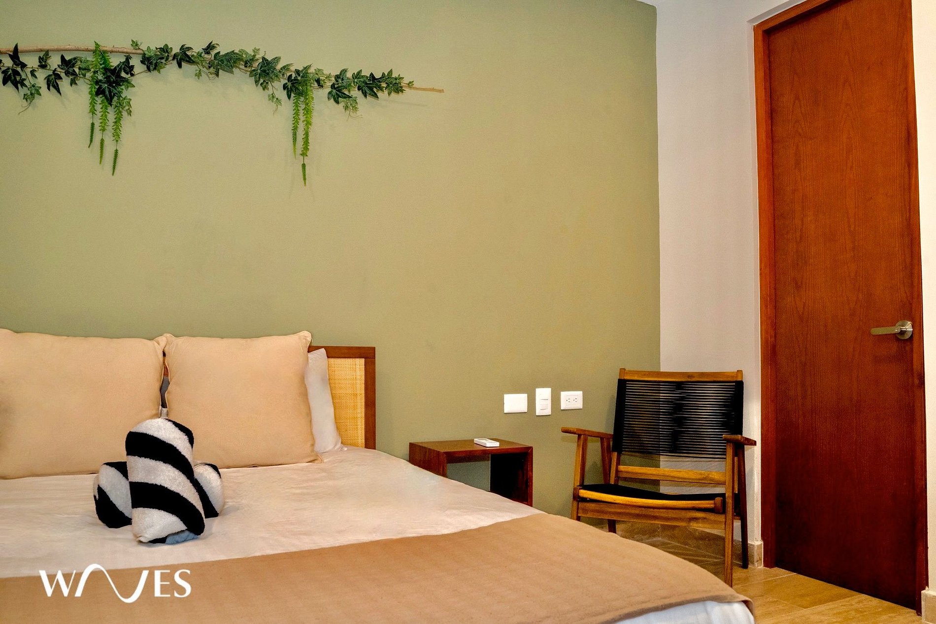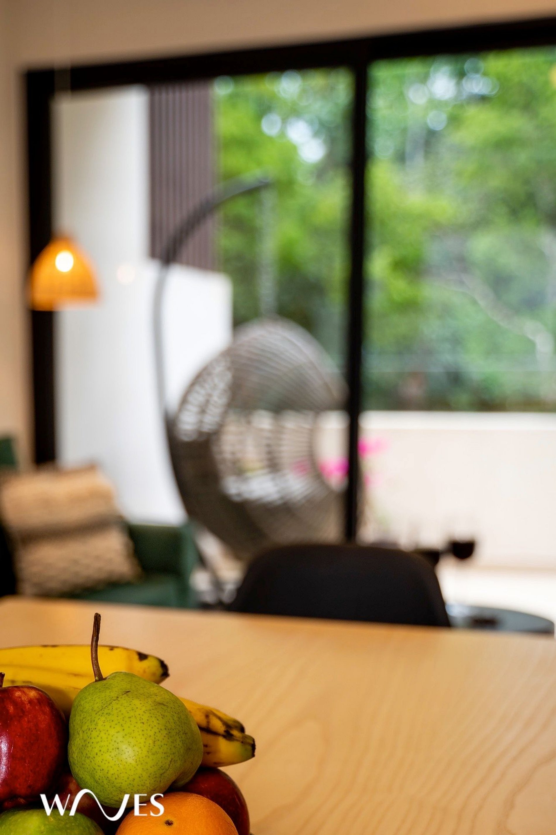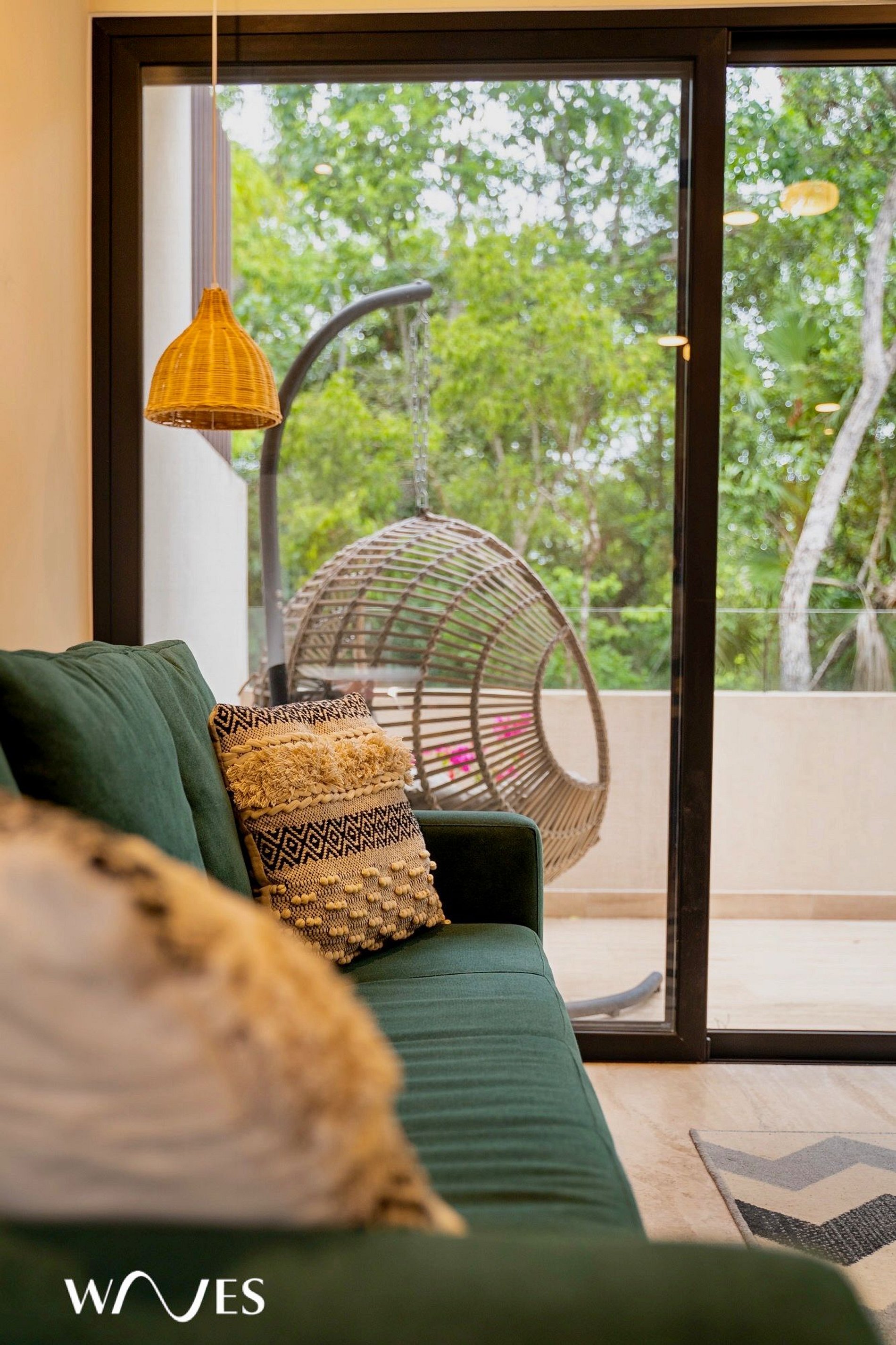 The apartment features 1 bedroom with a double bed, a fully equipped kitchen, and a cozy living room. Relax on the private balcony with jungle views, a serene and intimate space capturing the energy of Tulum and the Riviera Maya.
