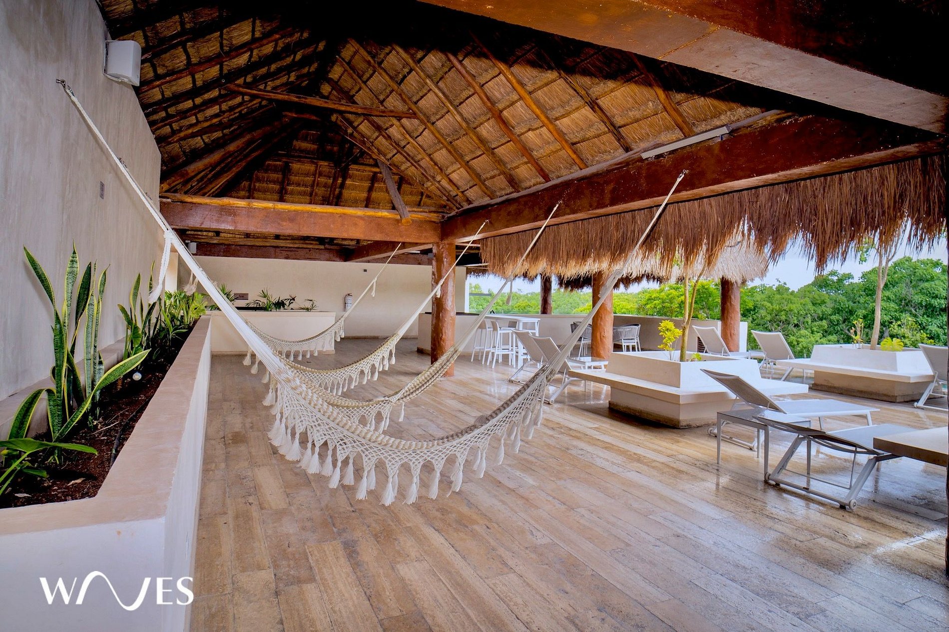 Experience Tulum in this stunning Aldea Zama Premium apartment. Luxury amenities meet nature: outdoor cinema, coworking spaces, jungle-view pool, gym, spa, sauna, sky bar, bikes, parking, kids club, 24/7 security, and reception.