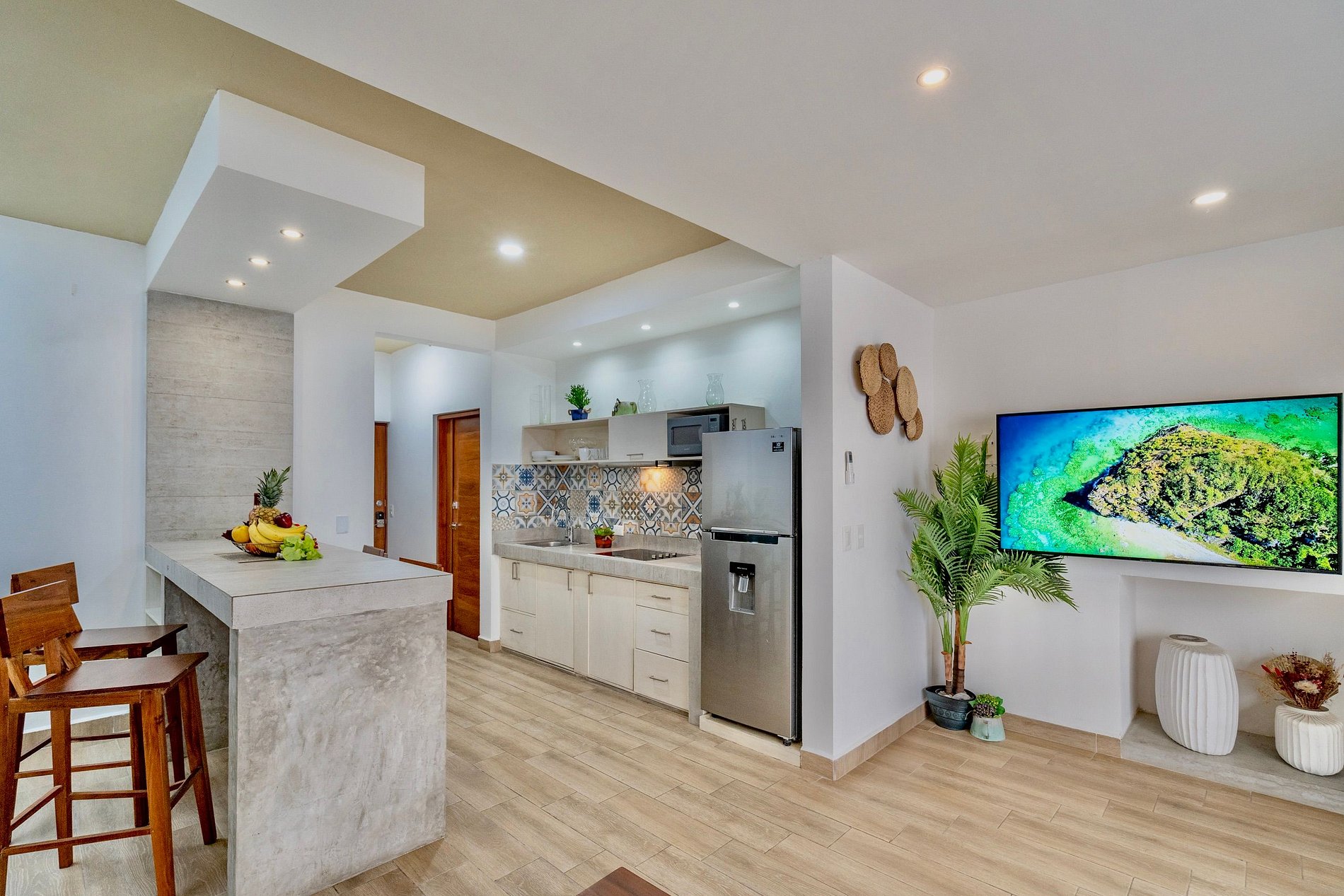 Experience Tulum from this spacious apartment in the heart of Aldea Zama. Just steps from cafés, shops, and restaurants, it offers comfort, privacy, and a relaxed vibe. Enjoy the rooftop pool with loungers or stay connected with 200 Mbps WiFi — perfect for relaxation or remote work.