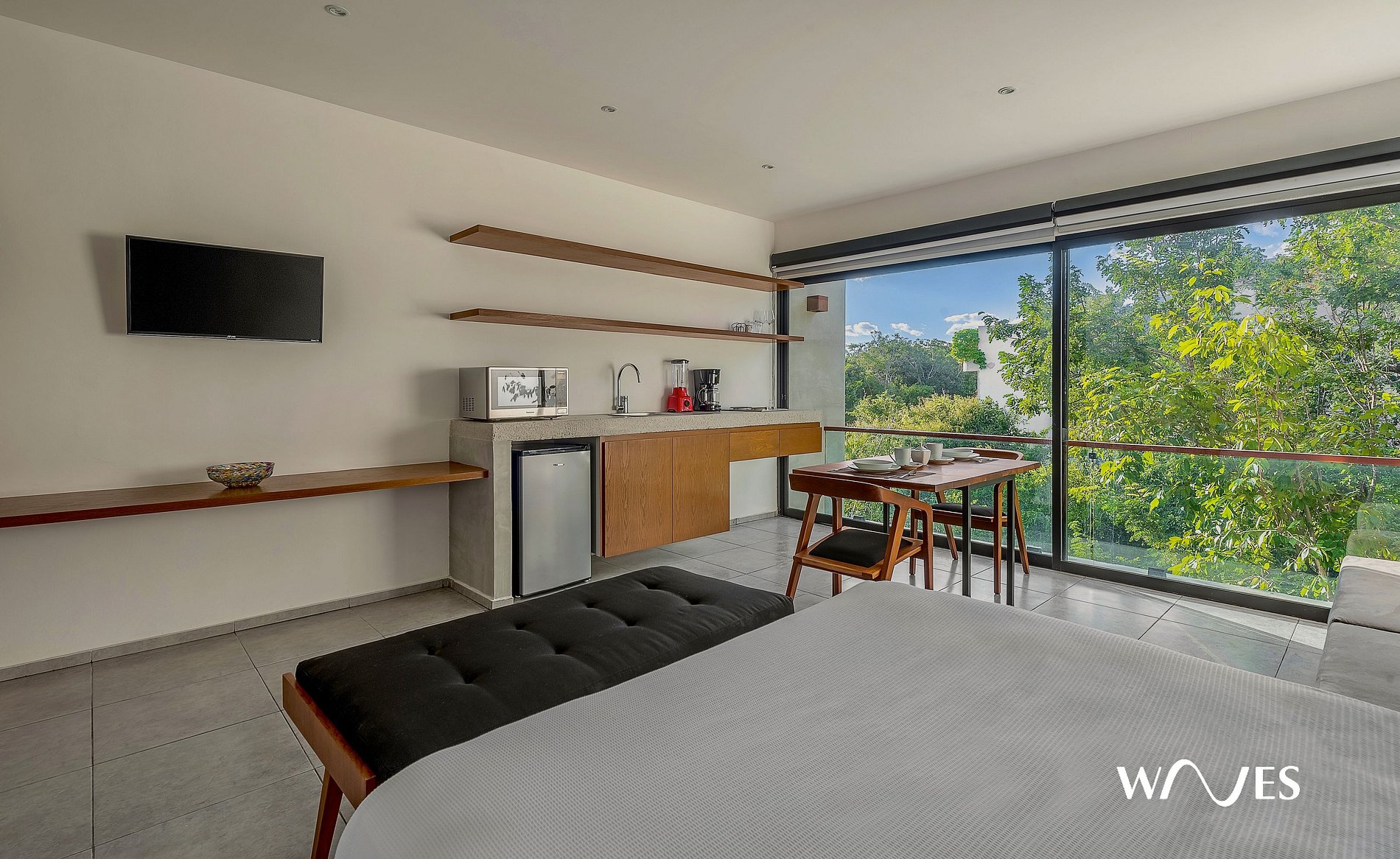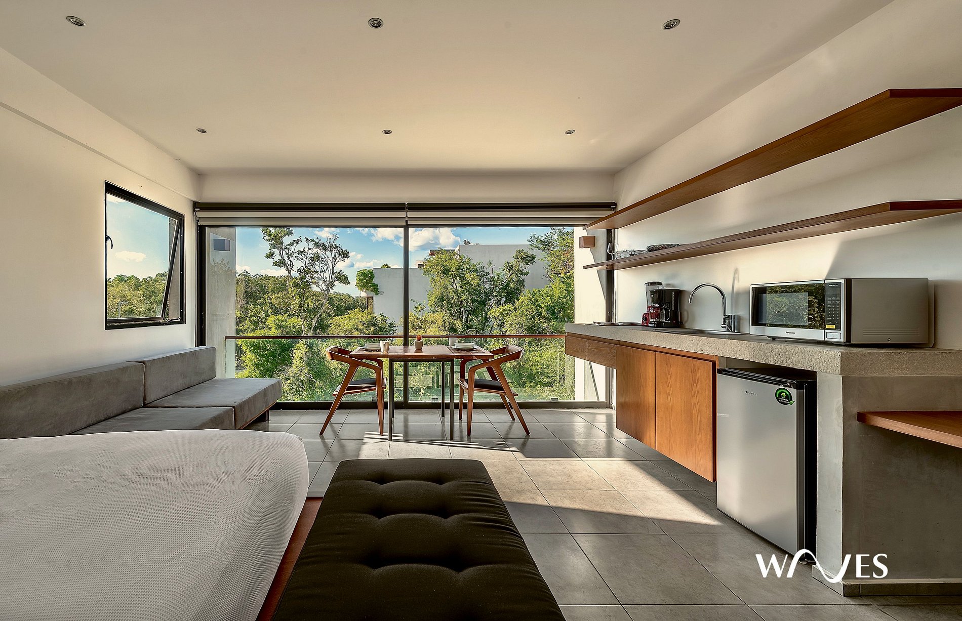 This spacious loft blends contemporary design with natural touches for an unforgettable stay. It features a queen bed, a fully equipped kitchenette, a modern bathroom with hot water, and plenty of natural light. Every detail is designed for comfort, privacy, and a relaxed Tulum vibe. Perfect for travelers, couples, or digital nomads.