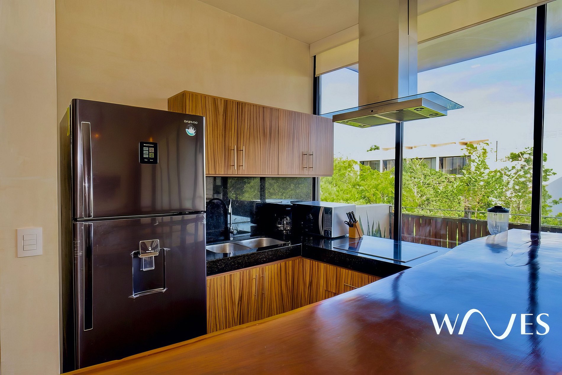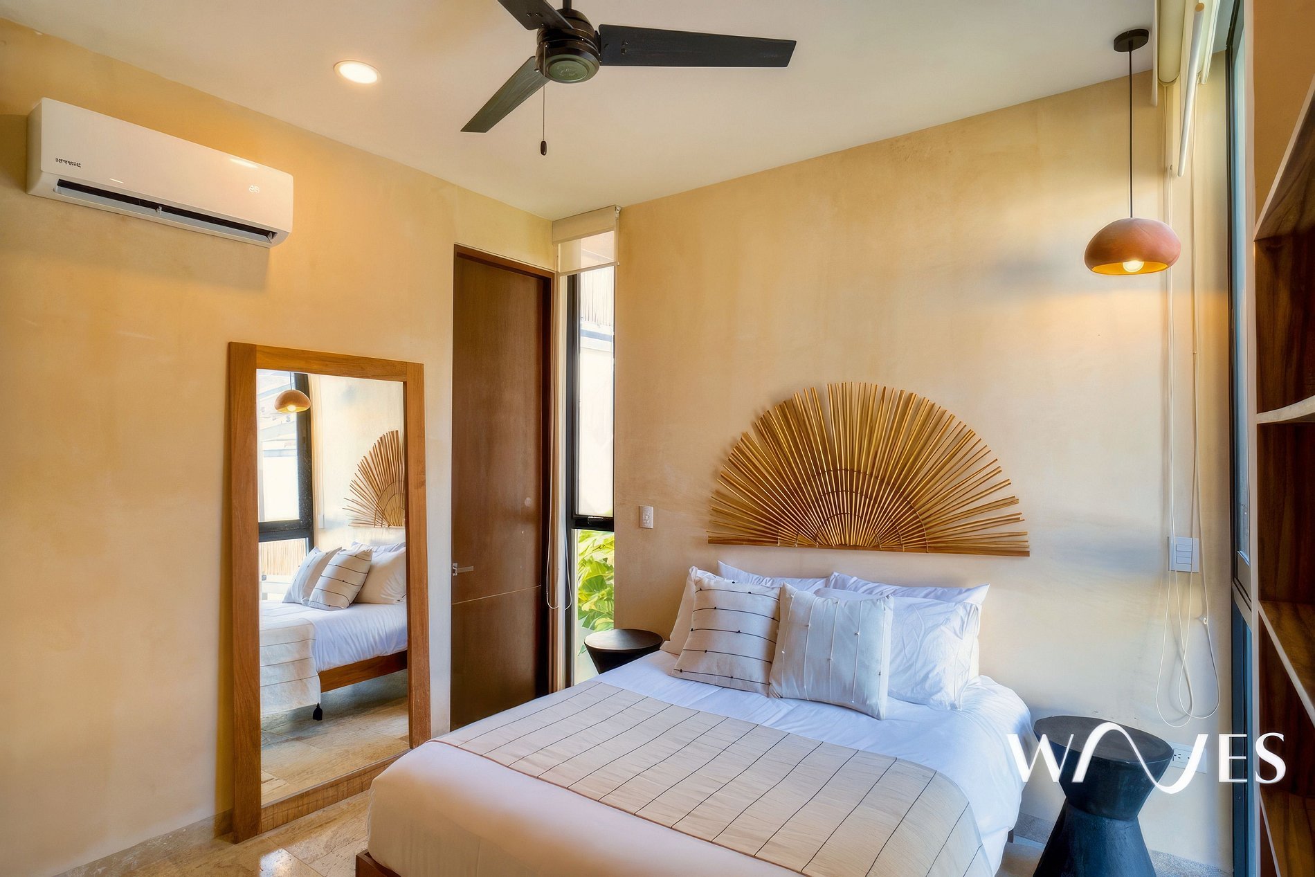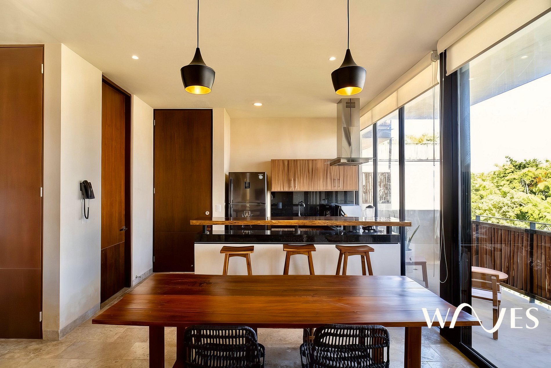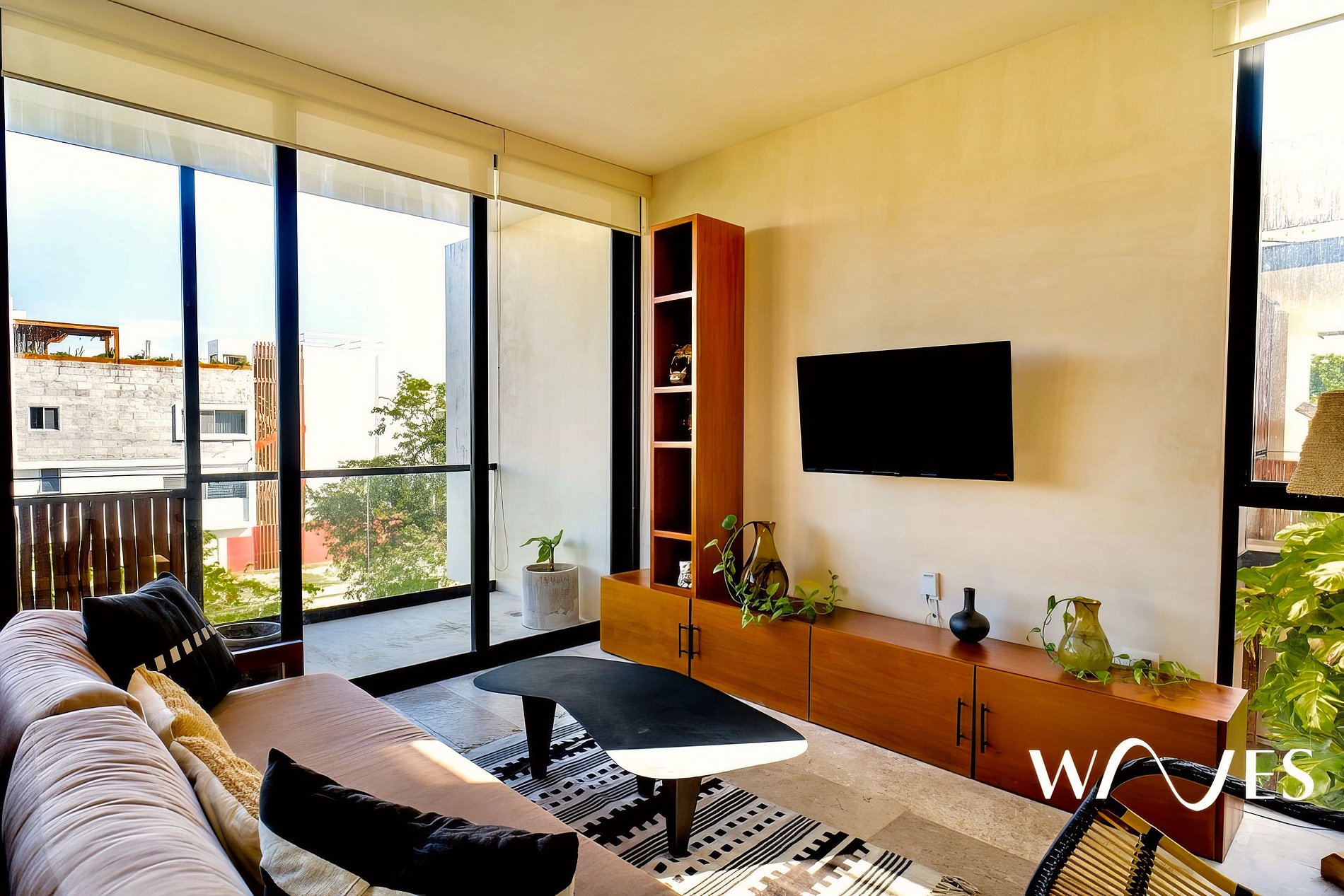 Experience Tulum from this modern 2-bedroom apartment, featuring a rooftop pool, loungers, and relaxation areas. Bright and inviting spaces perfect for families or groups. The location allows easy exploration of the city while enjoying the unique vibe of Aldea Zama and the Riviera Maya.