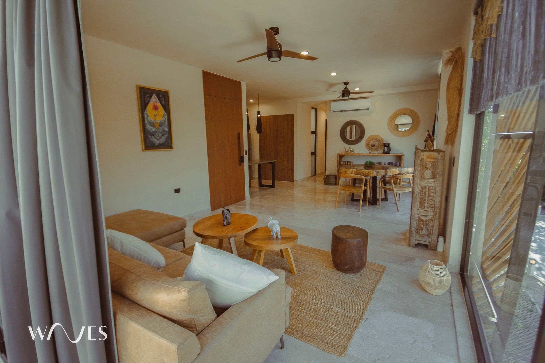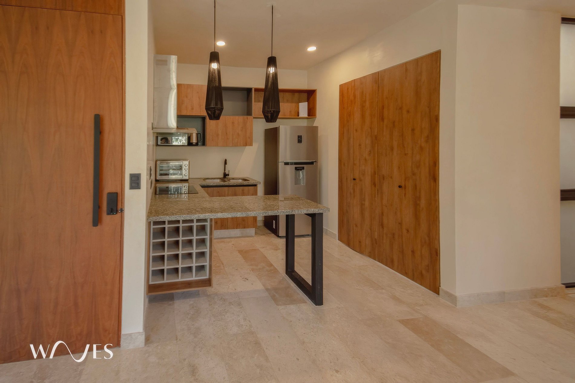 Ubicado en el centro de Tulum, cerca de la zona arqueológica, zona hotelera, playas, el pueblo y cenotes cercanos — ideal para explorar en bicicleta. Si traes auto, cuenta con estacionamiento gratuito frente al edificio y en las calles cercanas.