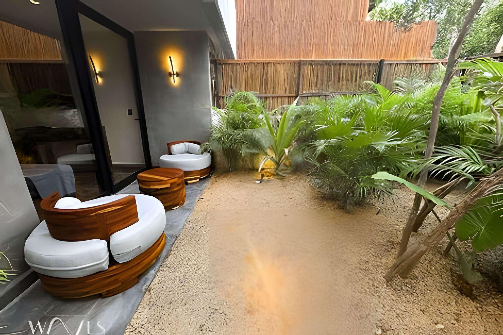 Este moderno departamento de 2 recámaras y 2 baños se encuentra en el exclusivo complejo Humana Tulum. Cuenta con una alberca privada en el patio trasero, amplia terraza amueblada, cocina equipada, aire acondicionado y WiFi de alta velocidad. Una recámara tiene cama king y la otra dos camas dobles. Los huéspedes también pueden disfrutar de una bonita alberca compartida y áreas de jardín dentro del complejo.