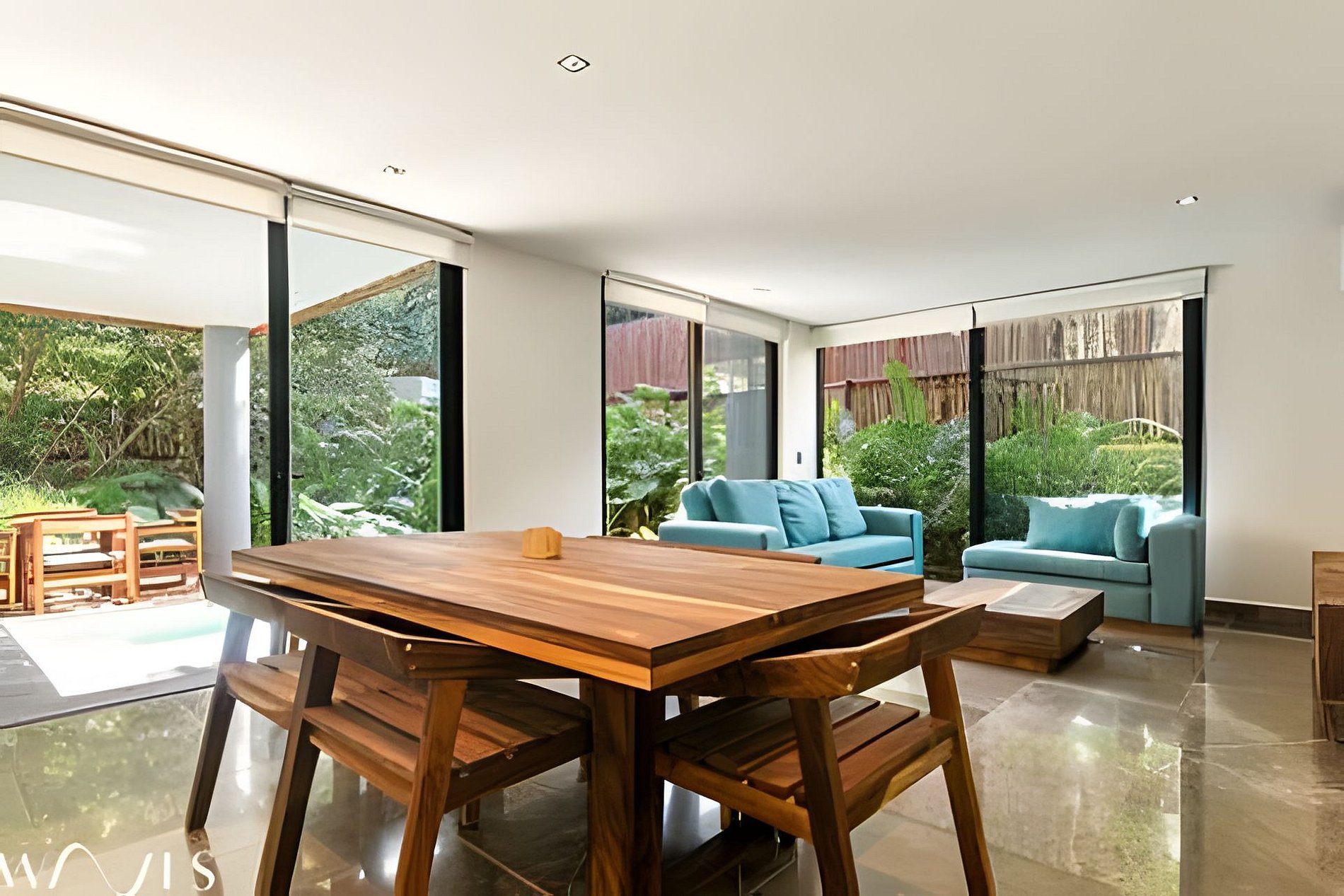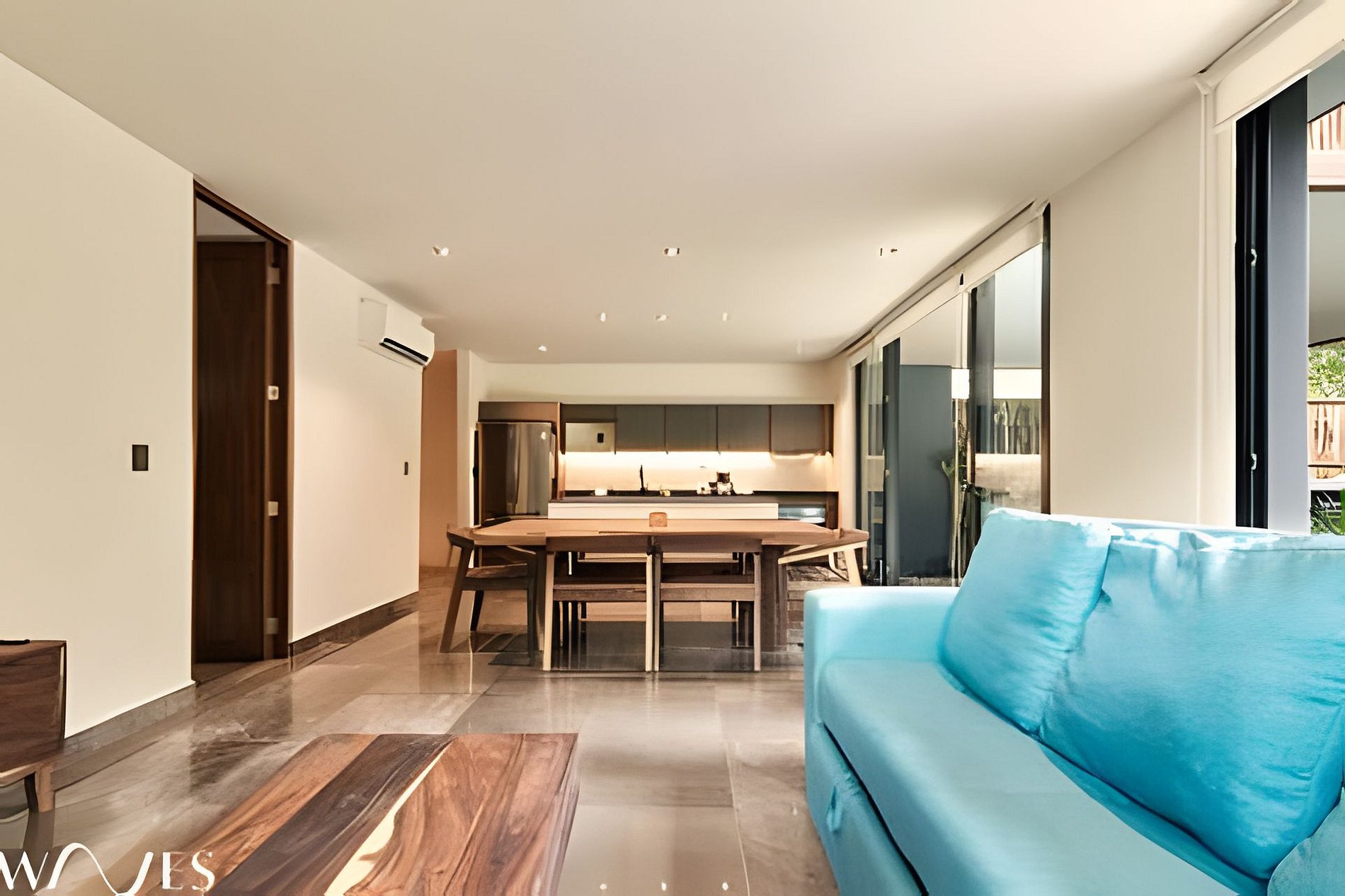 Ubicado en el exclusivo condominio Humana, este moderno departamento ofrece un ambiente cómodo y privado. Su patio privado con alberca es perfecto para descansar o disfrutar al aire libre. El interior cuenta con diseño elegante, luz natural y espacios bien equipados para trabajar o relajarte. Ideal para parejas, familias o nómadas digitales que buscan tranquilidad sin alejarse del mar.