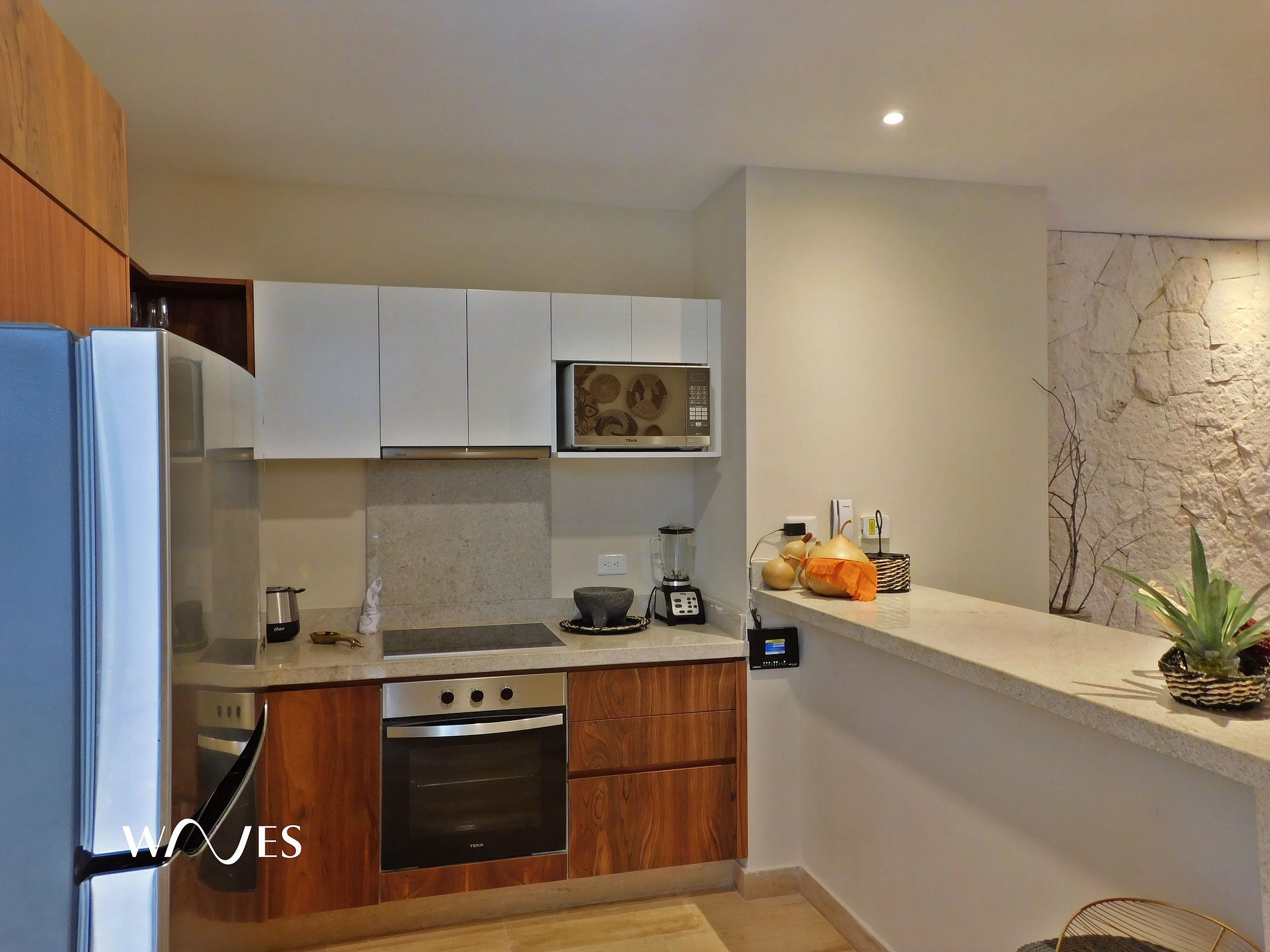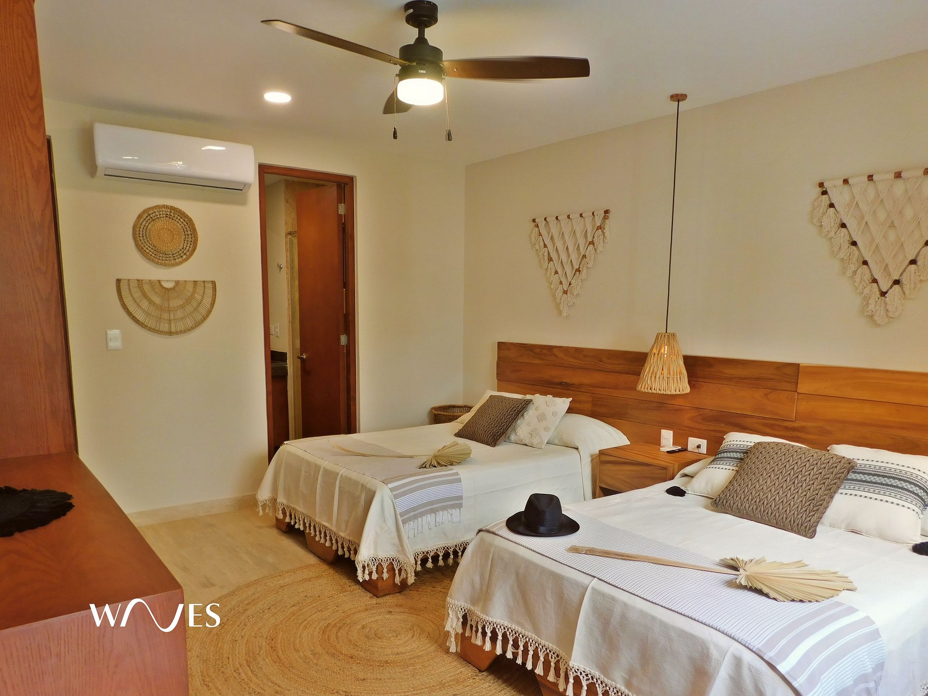 Casa Lafi cuenta con dos recámaras: una con cama King Size y otra con dos camas dobles. Además, una cocina totalmente equipada y una sala con sofá muy cómodo. Su diseño y luz natural crean un ambiente acogedor y tranquilo, ideal para descansar y disfrutar la energía única de Tulum y la Riviera Maya.