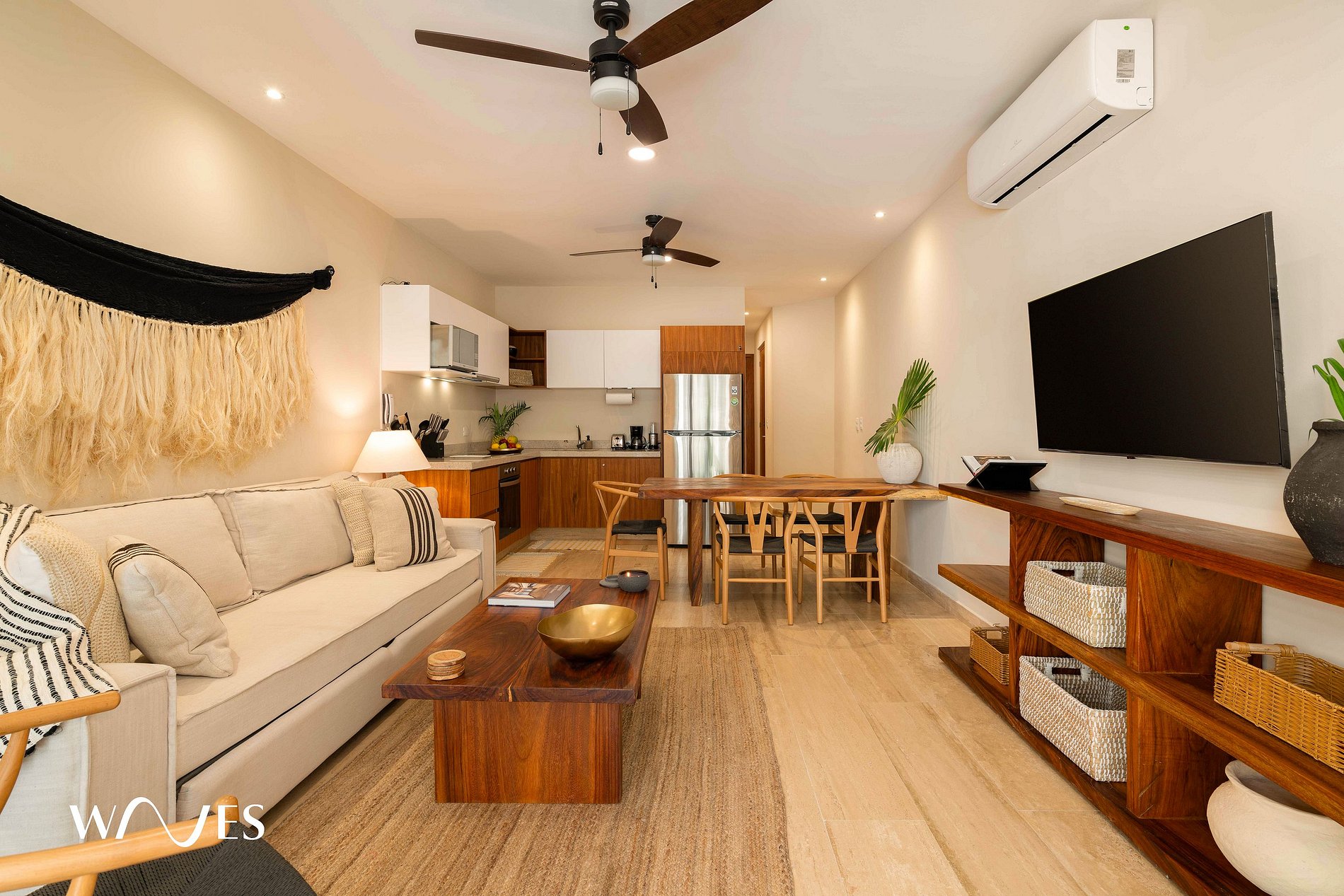 El departamento ofrece una recámara con cama King Size, cocina totalmente equipada y una sala amplia con sofá cama muy cómodo. Relájate en el patio privado con piscina, jardín y hamacas, ideal para disfrutar de la tranquilidad y la energía natural de Tulum. Un refugio íntimo y acogedor para disfrutar lo mejor de la Riviera Maya.