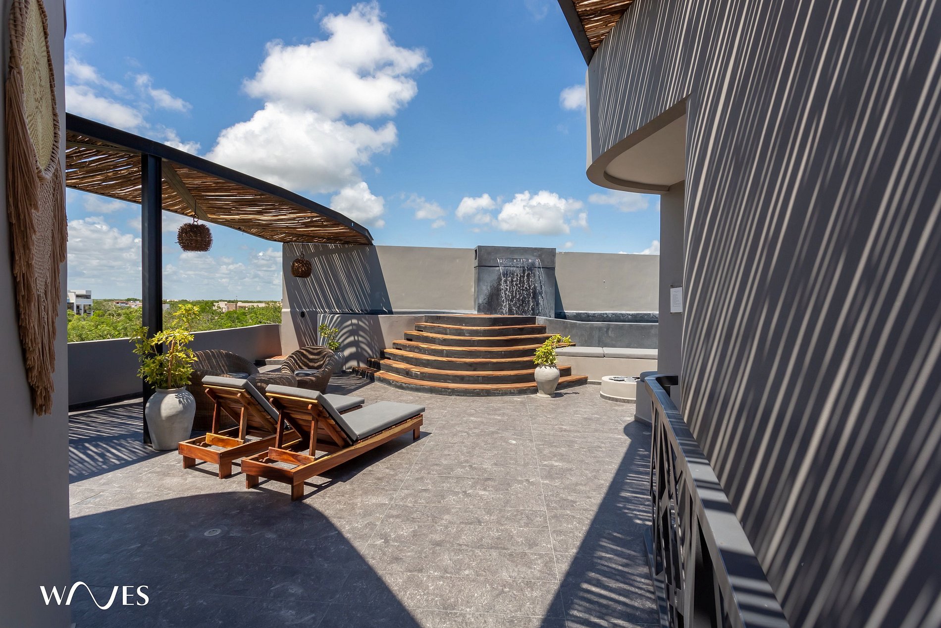 Disfruta lo mejor de Tulum desde este moderno departamento en Aldea Zama. Relájate en la alberca de la terraza, el sauna o la sala de vapor, y aprovecha las comodidades del gimnasio y las áreas comunes. Su ubicación es inmejorable: a pocos pasos de cafés, restaurantes y tiendas. Ideal para una estancia relajada y con estilo.